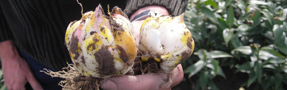 球根類は良質なものをスピード納品することはもちろんのこと、そこにプラス新品種やきめ細かな栽培などの情報を提供、問い合わせに対する素早いレスポンスなど、ソフトの部分でもお客様に満足いただけるよう充実させています。