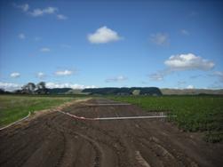 デヨングとの契約栽培を行っている会社で、南島の最南部に位置する都市インバーカーギルより、車で1時間ほど北東に向かったとゴアという町に位置しています。圃場はそこからさらに40kmほど離れた場所にあります。今回の視察期間中は、ニュージーランド全土で大体晴れていたので、各地域で気候の違いを肌で感じやすかったですが、やはりこの地域はラカイアよりも2~3℃くらいは低いかなという感じです。位置的にも当然と言えば当然なのですが‥日本で言うと東北地方北部といった感じでしょうか。