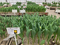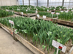 この試験栽培は、5℃冷蔵チューリップを用いて同一品種を2回に分けて定植しており、1回目が2月中旬頃から、2回目が2月下旬頃からの開花を見込んでおります。