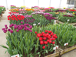 弊社で行っておりますチューリップ試験栽培ですが、先日まで続いた好天により一気に開花が進みました。