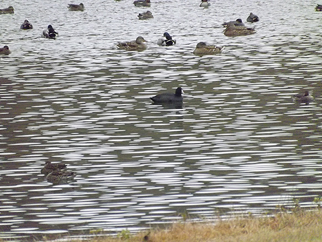 生まれて初めて、バードウォッチングに行った。誘ってくれたのは、この欄でお馴染みの鳥博士である。写真は、そのとき池に飛来していたオオバンだ(写真中央)。場所は、周囲を丘陵に囲まれた県立植物園である。