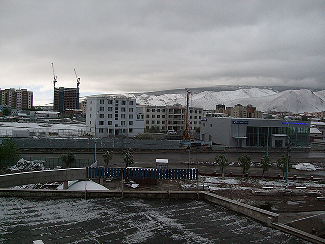 写真は、ウランバートル市の第23学校の外観である。上の写真は西南方向から、下の写真は正面から撮ったものだ。樹木の植え込みも噴水も見える。校舎はそれほど大きくはないが、後ろに見える四階建ての瀟洒な建物だ。繁華街に近い場所の学校である。