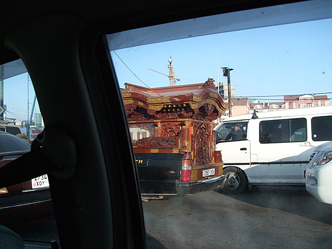 写真左は先月上旬の様子で、まだ何も整っていない状態のところ。けれど、右は今月中旬の風景である。なんと臨時に靴屋さんが店開きをしたのだ。その事はパートナーであるD社長から直前に聞かされた。市中心部にある同社の所有ビル=フラワーセンターが改修工事に入り、そこに入居していたテナントの一つらしい。そちらに短期間、貸すのだという。反対する理由がないから、了解した。