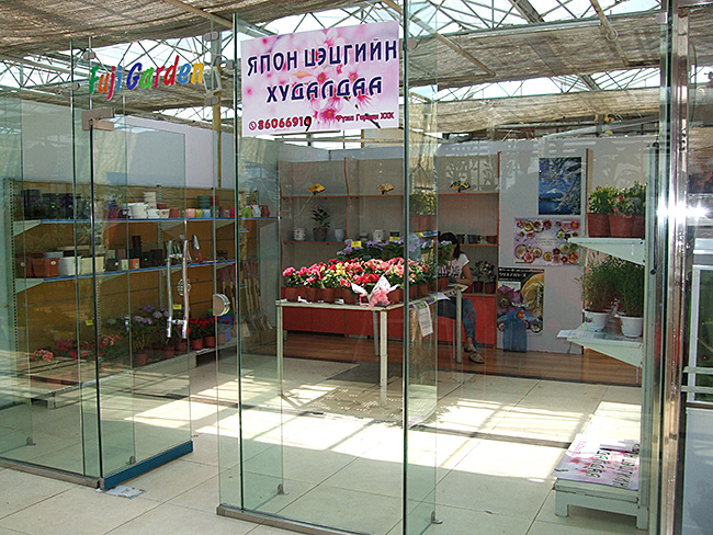 当初は5月開設の予定だった売り場が、ようやくできた。それはパートナーの経営するソヨーチ・ガーデンセンターの一角にオープンしたものだ。面積は30㎡ちょっと(写真左)。面積は小さいが、フジガーデンにとっては大きな出来事なのだ。