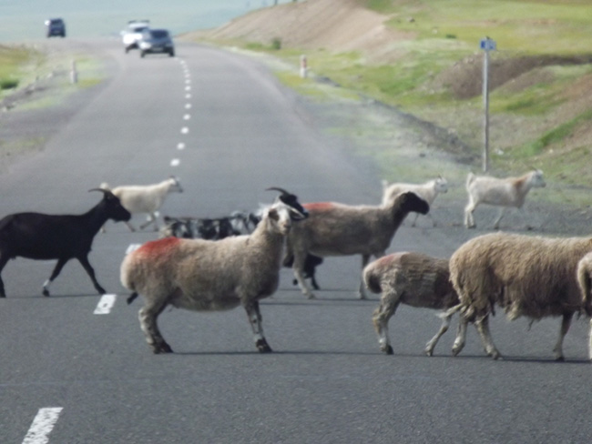 ところで,この辺りでは小麦畑はほとんど見かけなかった。やはり放牧が盛んな地域のようだ。ただ道路脇にときどき出現する、白,青,黄色などお花畑のような野草が美しかった。その景観は帰路で撮影したので、後日お見せしたい。