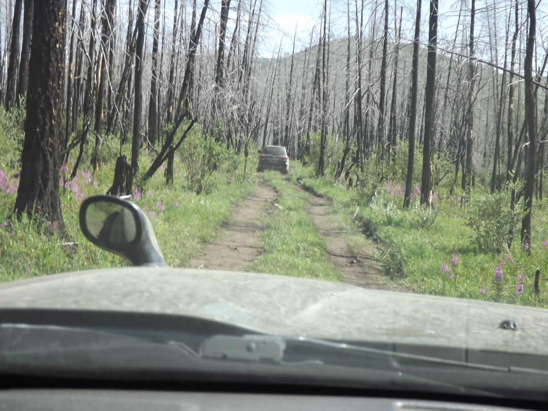 クルマのエンジントラブルは何とか切り抜けた。そして故障現場に引き返してくれたBa氏のクルマに先導されるようなかたちで、再び帰路につく。そうしてようやくオフロードを抜けた。しかしその間,ラジエータの冷却水はちょっとづつ漏れていた。それで道沿いに水場があったら止まって水を補給。その回数は3回に達した。