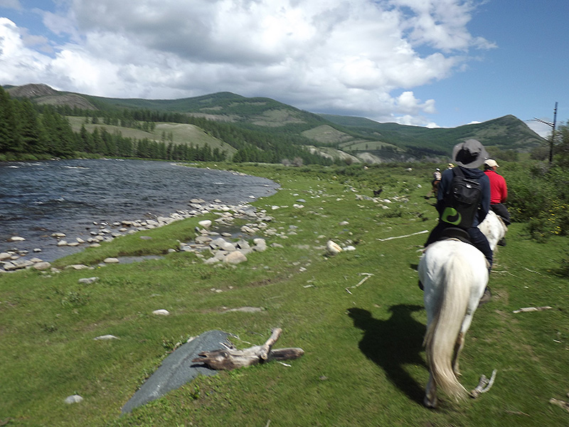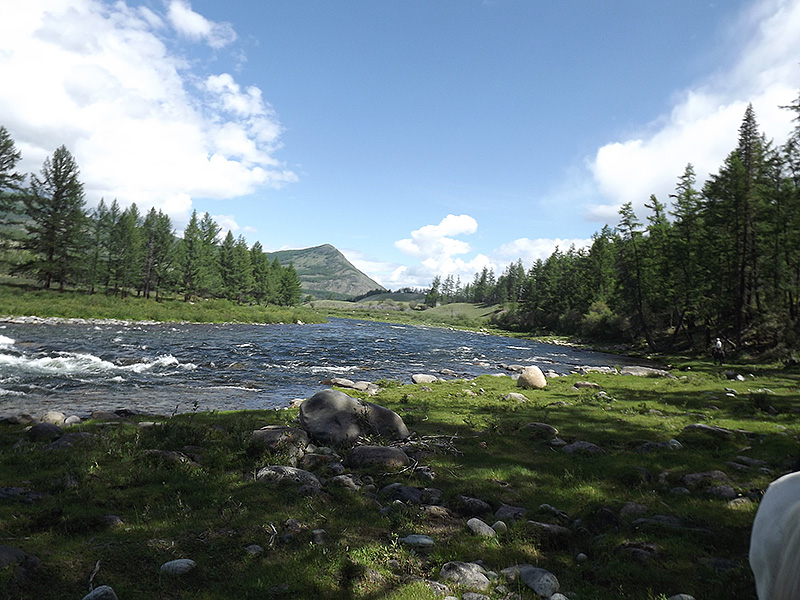 上の写真で赤いジャンパーを着て、白馬に跨っている男性はJ君といった。彼はメンバーのどなたかの親戚で、今回たまたまプラハから帰って来ていて、誘われたからついて来たという。好青年で筆者と何となく波長が合った。また彼は筆者のヘタな英語でも理解しようとしてくれた。それで後日、彼と二人でシシケッド川を船で渡る経験もした。さて?この写真の下端には筆者の馬の頭の先っぽが写ってしまっている!