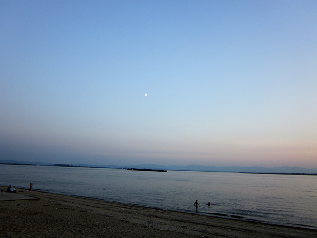 月明かりの世界がまもなく陽光の世界に入れ変わろうとするこの時間帯。大気は清浄な色と香りを漂わす。まだ鳥たちも騒ぎ出さず、静寂に包まれている。それに全く無風であった。この独特な時間と空間が自分のために現出したようにも感じる。心地よい、それでいて不思議な感覚・・・。